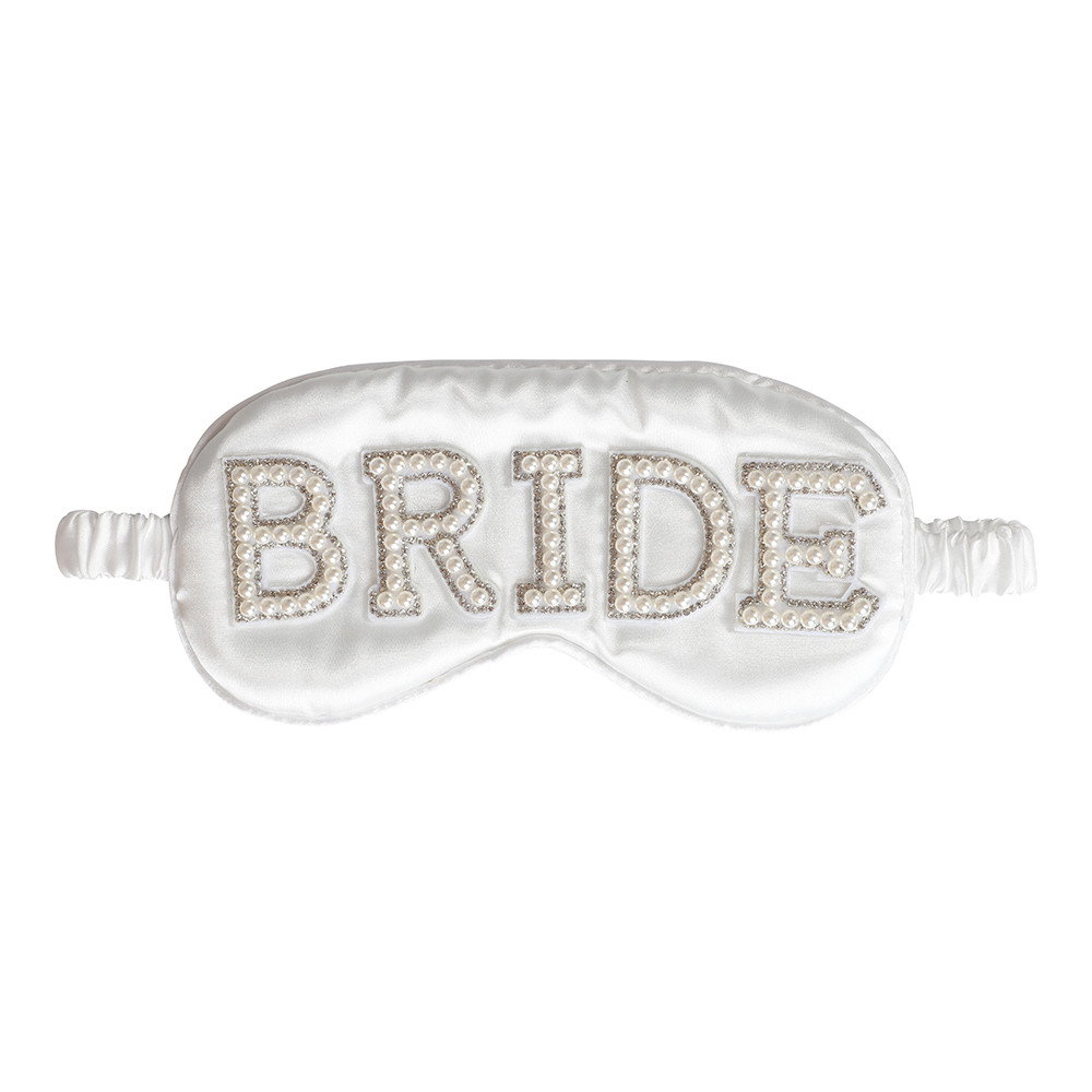 Vit ögonmask med Bride to Be-text som blir en kul och uppskattad detalj till möhippan, bröllopsresan eller morgonen efter firandet.